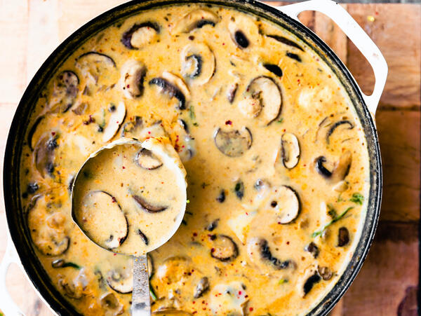 In a separate small bowl, whisk the thickening mixture; non dairy milk and arrowroot flour. Pour the flour milk mix into the soup and stir thoroughly to blend. Cover pot and simmer for 15 more minutes, stirring occasionally.