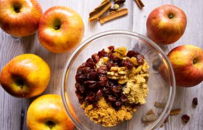 Stuffed Baked Apples with Walnuts, Raisins, and Cranberries
